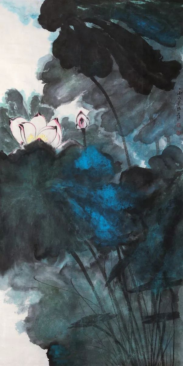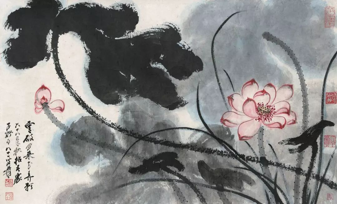 张大千 泼彩荷花